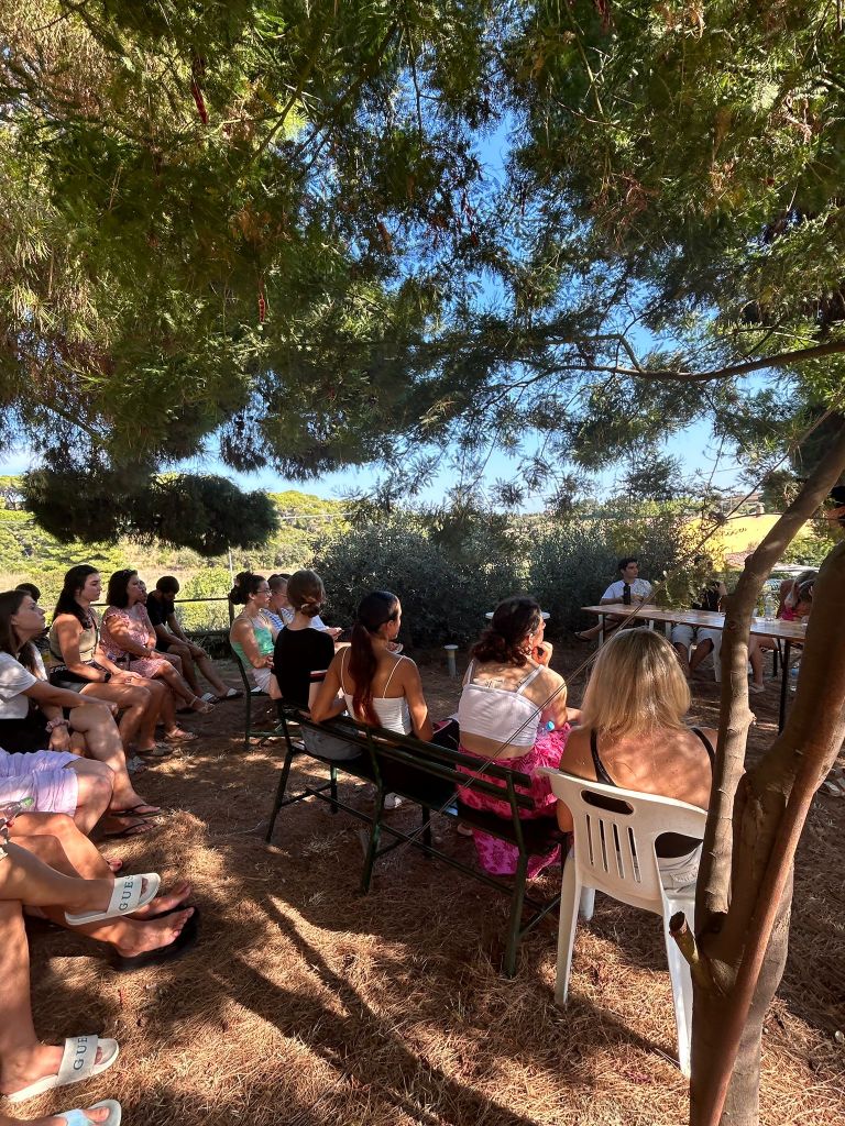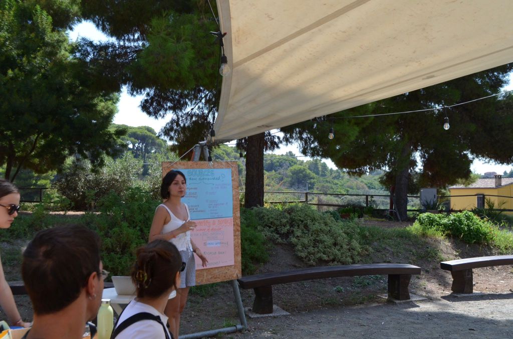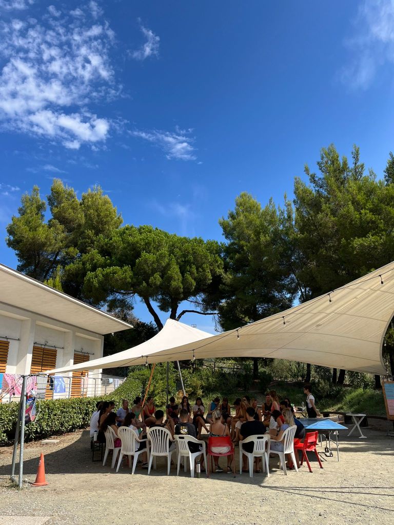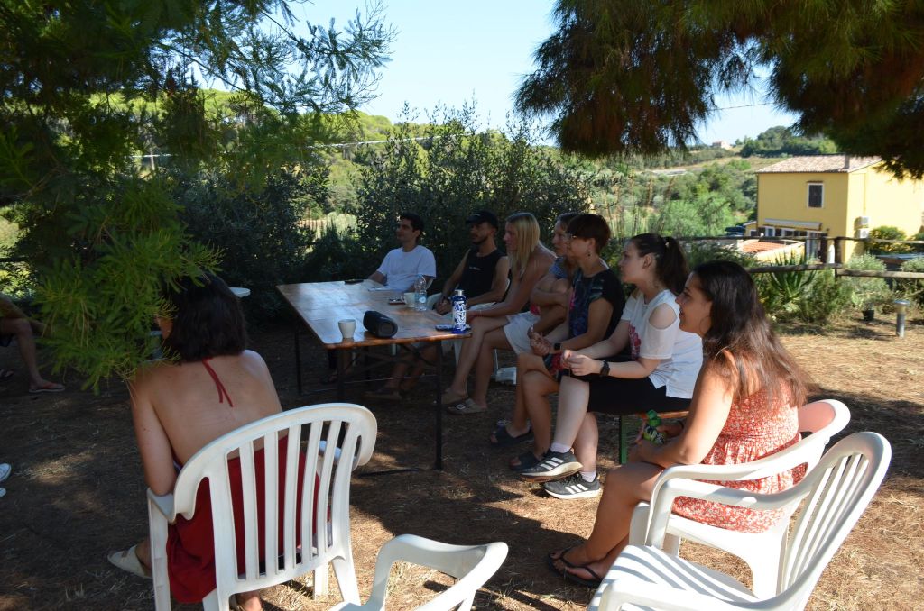C’è l’idea iniziale, ci sono tante videochiamate – spesso serali e puntualmente con qualcun* che nel frattempo si prepara la cena, perché, in fondo, abbiamo tutti una vita da bilanciare e incastrare tra un progetto e l’altro. Poi, dopo mesi di lavoro, cambi di programma e tutto il resto, eccoci lì, sull’Isola d’Elba, il primo giorno di progetto, sotto il sole caldo, a salutare i partecipanti e a dirci: bene, ci aspetta una bellissima settimana e un bellissimo viaggio.